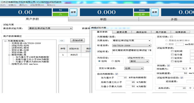 完全開放的試驗方法編輯界面,力-時間、力-位移、位移-時間、抗拉強度-時間、伸長率-時間、應力-應變等曲線圖可任意切換;自動求算拉力、抗拉強度、屈服強度、伸長率、彈性模量等指標,試驗報告可導入Word或Excel,多次試驗結果可同時展現,一張報表可展現多條試驗曲線,便于用戶對比。