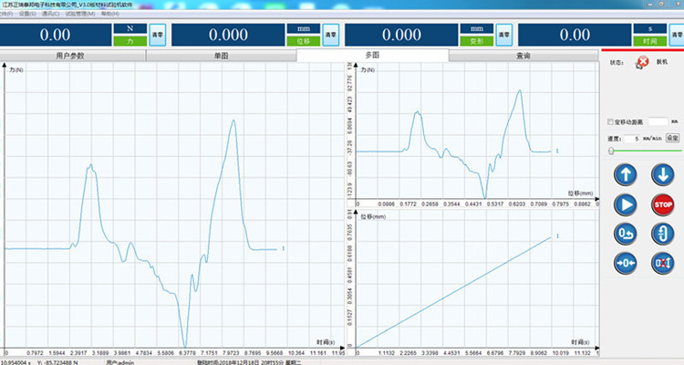 完全開放的試驗方法編輯界面,力-時間、力-位移、位移-時間、抗拉強度-時間、伸長率-時間、應力-應變等曲線圖可任意切換;自動求算拉力、抗拉強度、屈服強度、伸長率、彈性模量等指標,試驗報告可導入Word或Excel,多次試驗結果可同時展現,一張報表可展現多條試驗曲線,便于用戶對比。